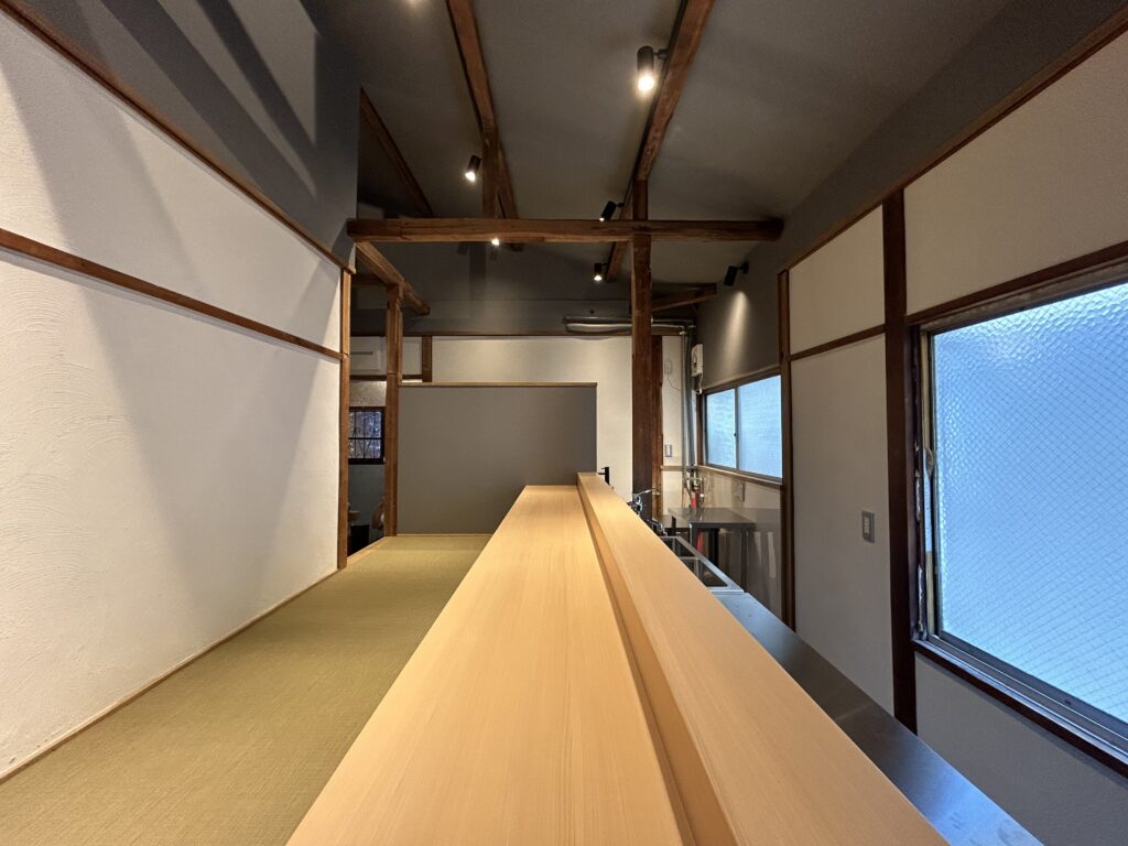 小上がりで畳のカウンターです。おでんとか食べたくなる雰囲気ですね。